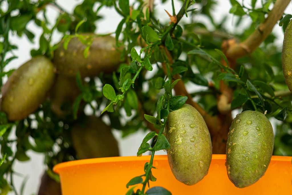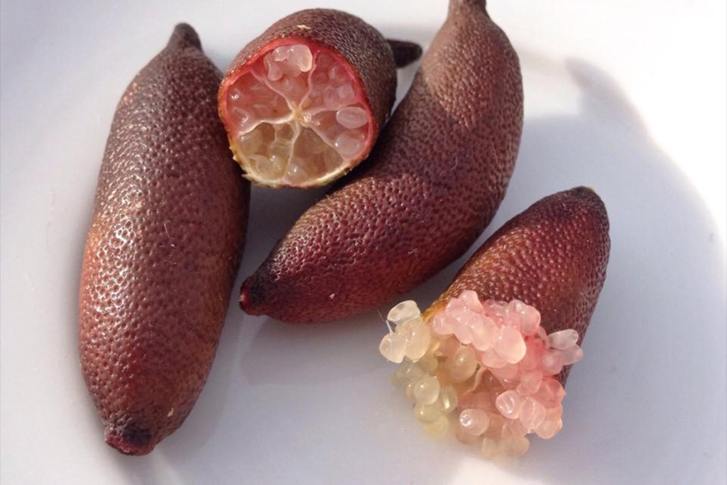 The Finger Lime (Citrus australasica) is an Australian native citrus that produces fruit with caviar-like pulp in bright colours.
