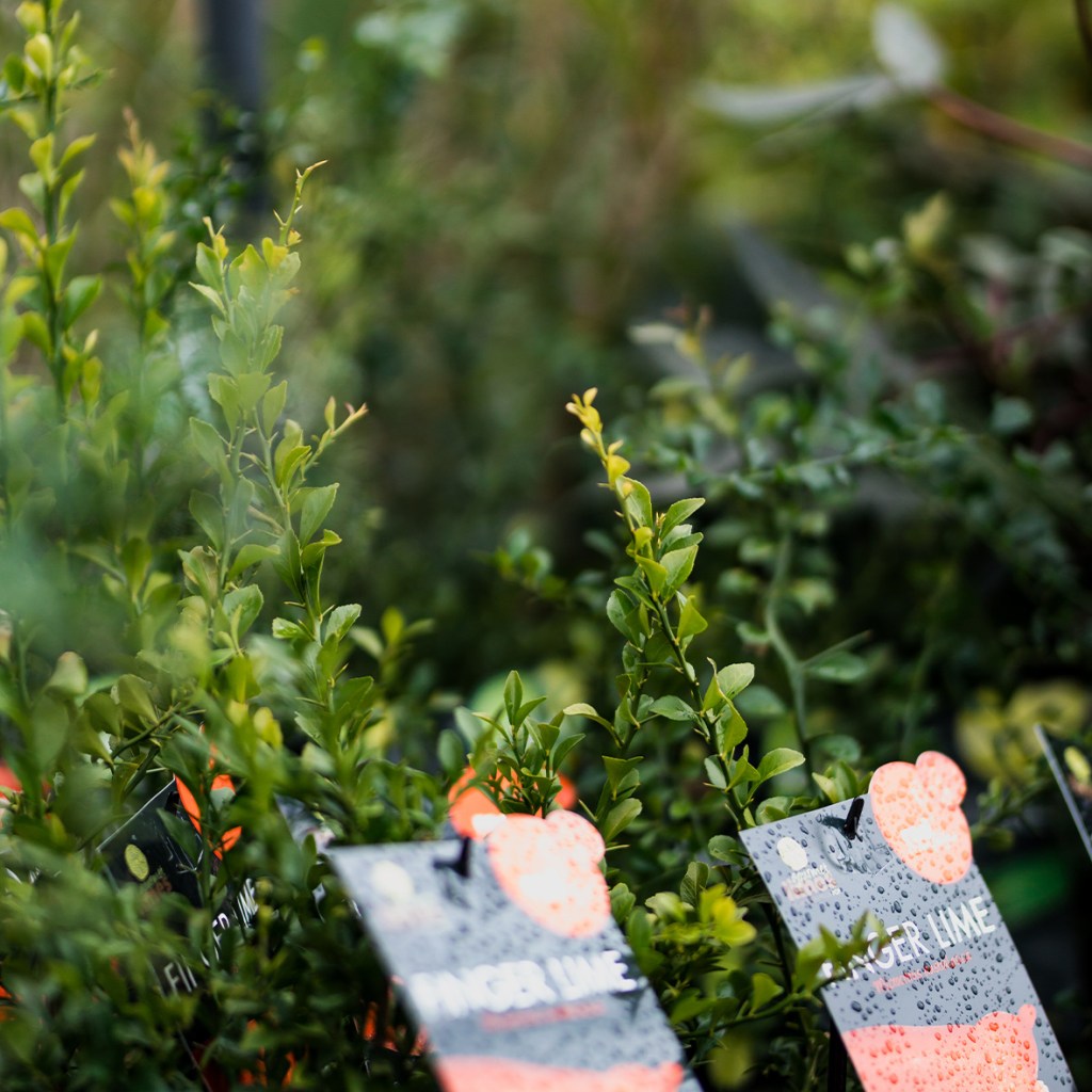 Flowers are produced in summer and autumn followed by the elongated fruit shaped like stumpy fingers. Fruits can be green, yellow, pink or bright red and are full of tiny beads filled with tangy citrus juice. The plant can grow up to 6m high but respond beautifully to trimming to keep them compact and manageable.